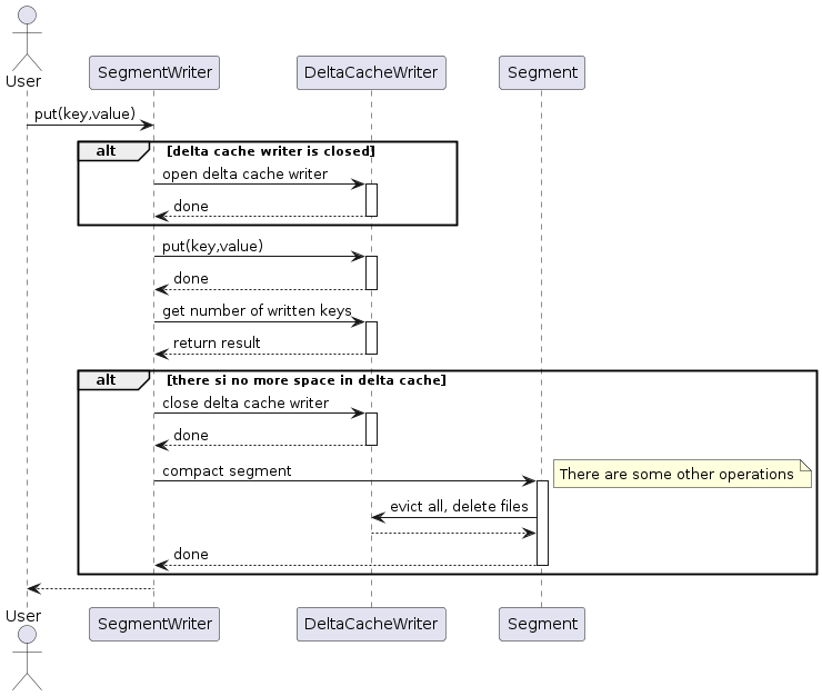 Object SegmentData could contains objects SegmentDeltaCache, BloomFilter and ScarceIndex. All of them are lazy loaded by SegmentDataSupplier. For closer class description look at source code.